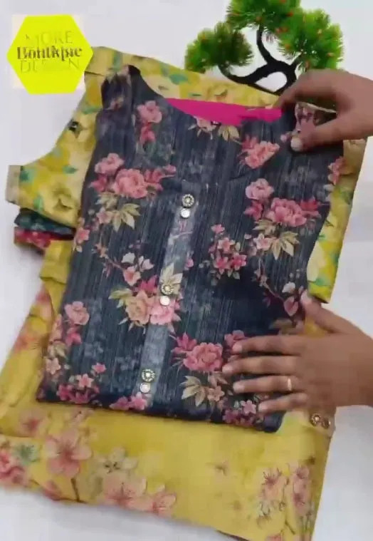 Women Floral Print Cotton Silk Kurta Set (Multicolor)
