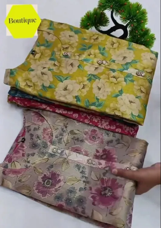 Sleeves: Three-quarter sleeves with matching floral print